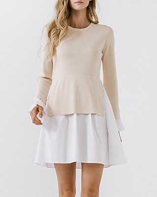 English Factory Poplin Combo Knit Mini Dress Express